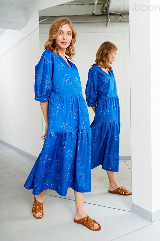 Яркое, свободное и комфортное платье ArtRibbon из хлопковой ткани станет удачным выбором для жарких летних дней.