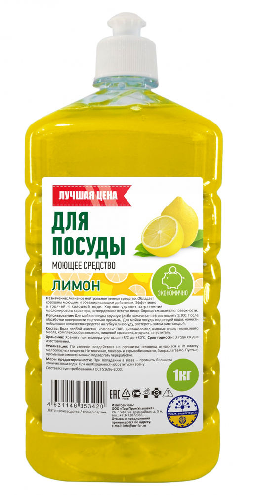 ///Средство для мытья посуды 1 кг. Лимон/Яблоко_Лучшая цена пуш-пул
