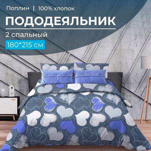 Ищете комфортный и качественный пододеяльник, который обеспечит Вам и Вашей семье мягкий сон? Представляем наш 2 спальный пододеяльник размером 180х215 (вход для одеяла находится внизу изделия), плотностью ткани 110 г/м2 из поплина – 100% хлопка! Хлопок обладает высоким качеством, что гарантирует Вам долговечность и удобство использования. Пододеяльник из поплина обеспечит приятную прохладу летом и тепло зимой, благодаря своей дышащей и гипоаллергенной структуре. Кроме того он легко стирается и сохраняет свою форму и качество даже после многих стирок. Выберите качество и комфорт для своего сна с нашим хлопковым пододеяльником! -- Характеристики -- Вес: 900 кг Размерность пододеяльника: 2-х спальный Размер пододеяльника: 180x215 Замок пододеяльника: С прорезью Длина прорези (см): 70 см Ткань: Поплин Состав: 100 % хлопок Плотность: 110 г/м2 Плотность плетения: Высокая Режим стирки: При 40 градусах Цвет: Синий Расцветка: Романтика, синий Вид принта: Сердечки Целевая аудитория: Взрослая