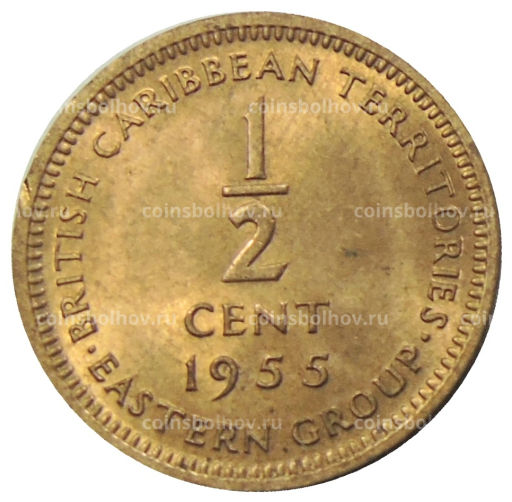 • Монета 1/2 цента 1955 года Британские Восточные Карибы