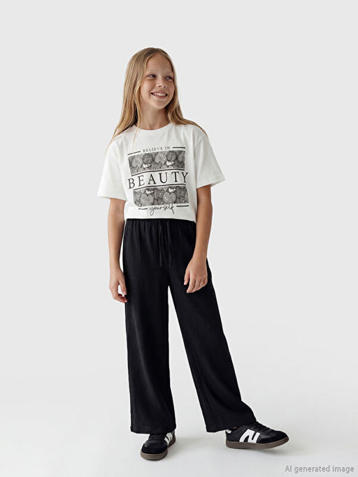 • Bisiklet Yaka Bask?l? K?z ?ocuk Ti??rt ve Pantolon