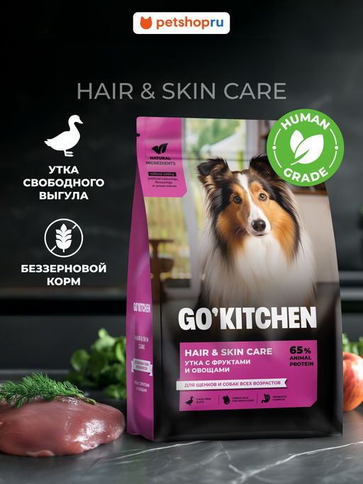 Сухой корм для щенков и собак всех возрастов со свежей уткой, фруктами и овощами HAIR+SKIN CARE Duck