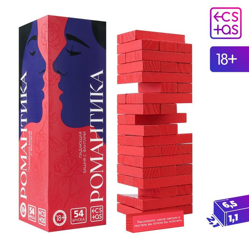 Падающая башня для пар Романтика, с фантами, 54 бруска, 18+