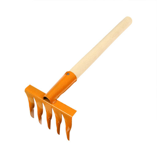 • Малые прямые грабли, 5 витых зубцов, длина 41 см, металл, деревянная ручка