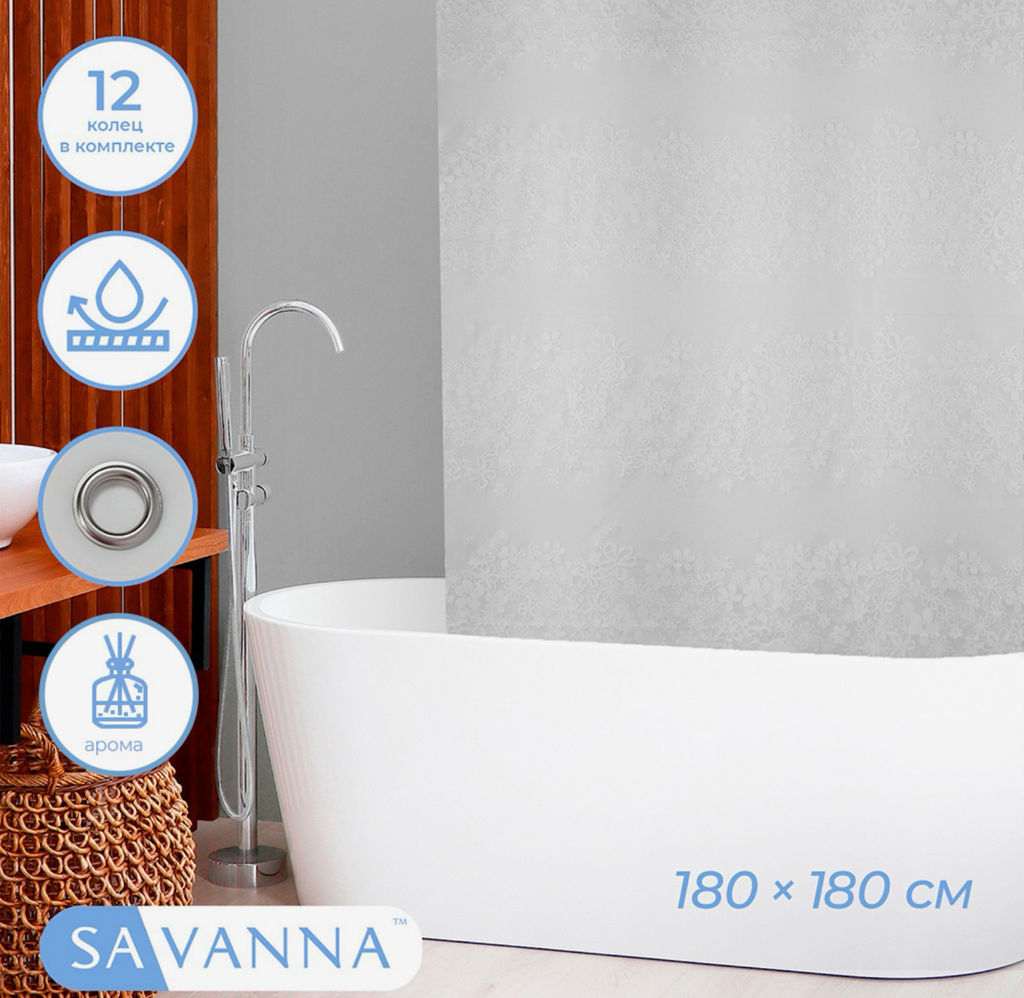 Штора для ванной «Цветочный вальс», с люверсами, с утяжелителями, PEVA ароматизированная, 180×180 см, белая