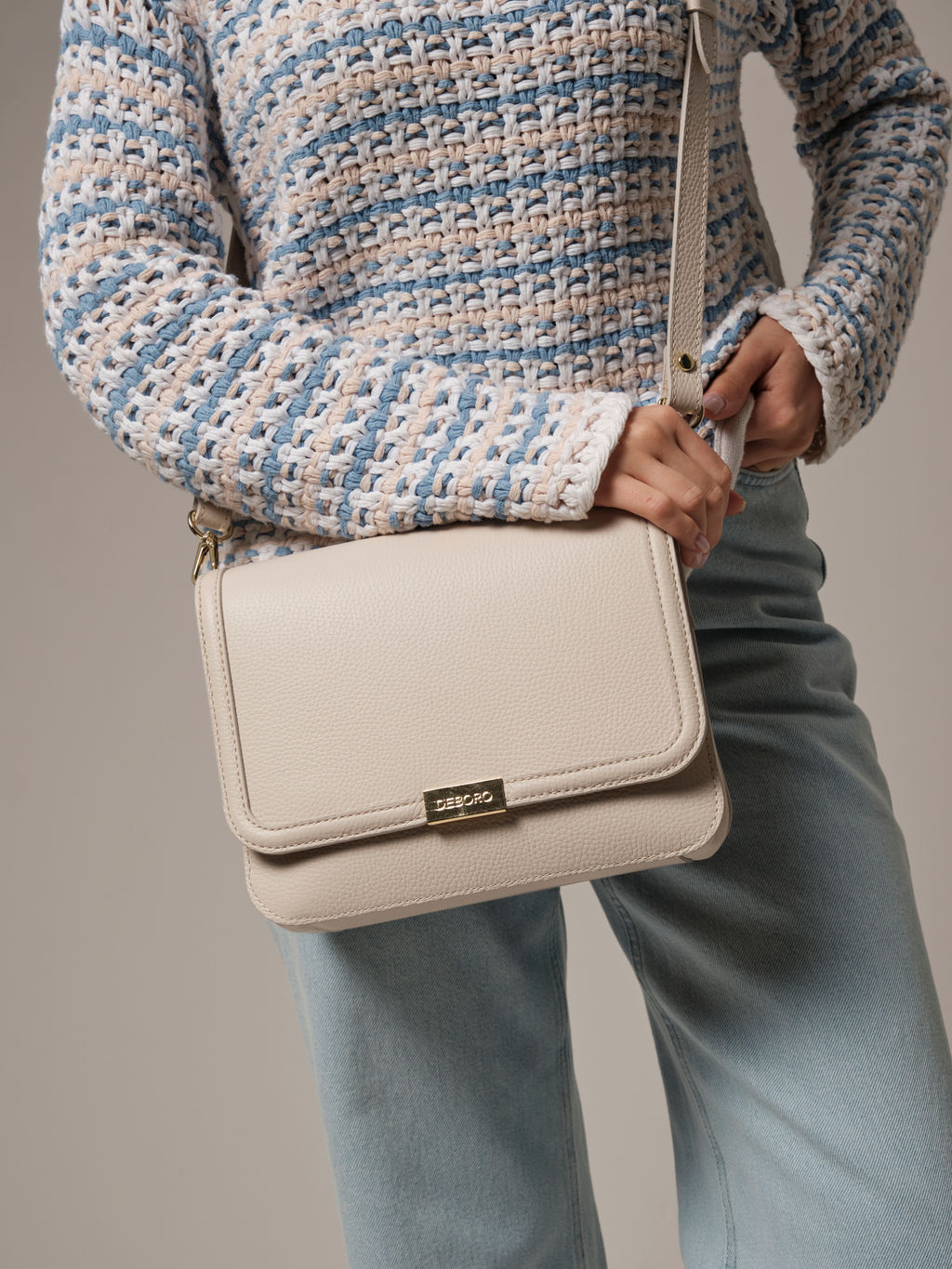 Детали: натуральная кожа, внутренний клапан из натуральной замши, 2 отделения на хлопковой водонепроницаемой подкладке, 1 внутренний карман на молнии, длинный съемный регулируемый плечевой ремень. Стильная женская сумка через плечо Deboro 30532 светлый крем станет отличным дополнением вашего образа и надежным аксессуаром для повседневной жизни. Изготовленная из натуральной кожи, она обладает высокой прочностью и долговечностью. Эта сумка кросс боди выполнена в аккуратном и элегантном дизайне, что делает её универсальным вариантом как для ежедневного использования, так и для особых случаев. Регулируемый длинный ремень позволяет носить ее через плечо как кросс-боди, освобождая руки. Водонепроницаемая подкладка сбережет изделие от повреждений. Удобный замок обеспечивает быстрый доступ к нужным вещам. Два отделения и внутренний карман позволяют удобно расположить вещи. Использование натуральных материалов гарантирует не только стильный внешний вид, но и функциональность. Эта сумка DEBORO позволит вам выглядеть безупречно в любых обстоятельствах. -- Характеристики -- Цвет: светлый крем Материал: Натуральная кожа Бренд: Deboro Тип: Сумка на плечо Страна-изготовитель: Россия Высота, см: 19 Ширина, см: 25 Глубина, см: 11 Материал подкладки: Хлопок Количество внутренних отделений: 2 Тип застежки: Магниты Формат А4: не вмещает Длина плечевого ремня, см: 120 Вес товара, г: 660 Ручки: На плечо;Одна лямка Пол: женская коллекция Группа товара: Сумки
