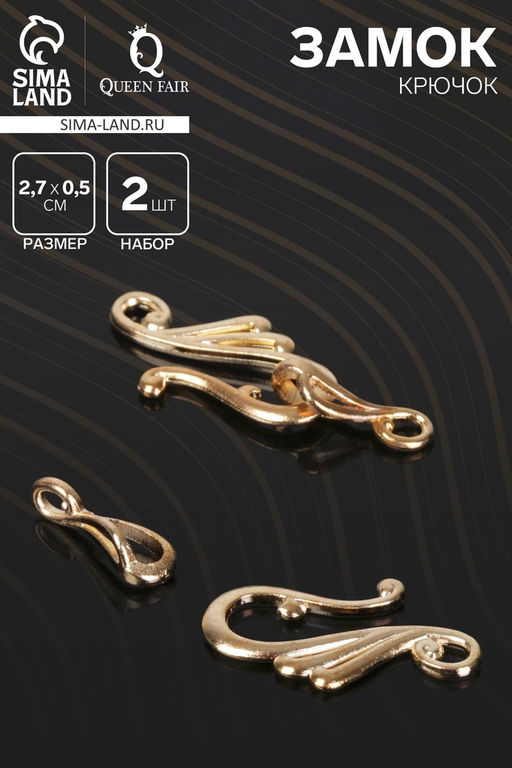 • Замок-крючок с ответной частью «Завитки», 2 шт. цвет золото