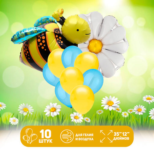 • Воздушные шары, букет «Пчела с цветком», набор 10 шт.