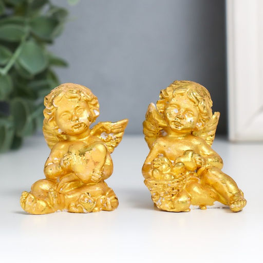 Фигурка полистоун Ангел с сердцем, золото, 4.5?4.5?5.7 см, МИКС