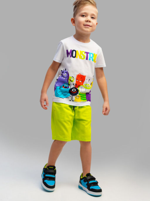 Костюм детский для мальчика. Комплект: футболка, шорты с высоким содержанием хлопка 95%. Благодаря наличию эластана в составе ткани изделие проще в уходе и держит форму. Шорты на резинке со шнурком. Боковые карманы. Модель выполнена из качественного и приятного на ощупь трикотажа.­