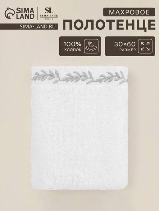 • Полотенце махровое SL HOME: Floral «Блан де Блан» 30×60 см, хлопок 100%, белое