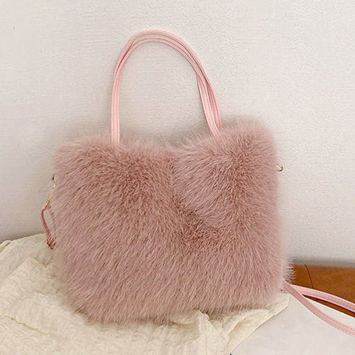 Женская сумка из мягкого пушистого материала ( искуственный мех)  с двумя ручками и дополнительным длинным ремнём через плечо.