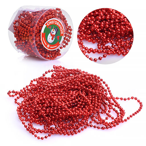• Новогоднее украшение "Бусы" красные, 10м, в банке