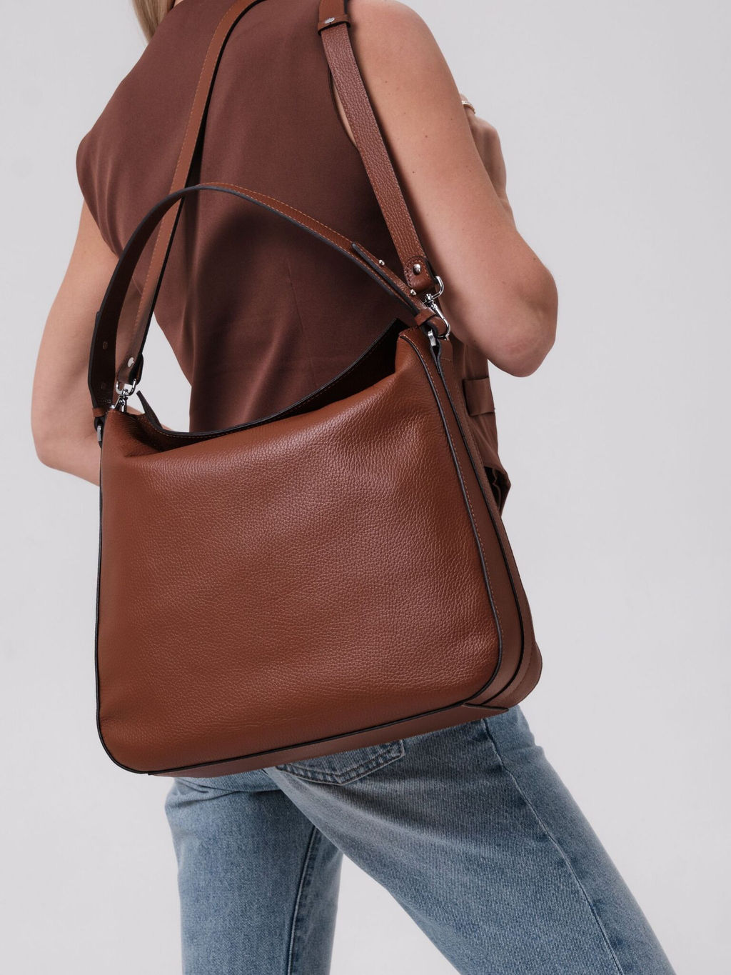 Кожаная сумка идеально подходит для повседневного использования, будь то прогулка по городу или встреча с друзьями. Благодаря средним размерам, она компактна и вмещает все необходимые вещи: телефон, кошелек и косметику, не создавая лишнего объема и сохраняя элегантность вашего образа. Классический дизайн сумки Azaro делает ее универсальной - она легко сочетается с любыми образами.