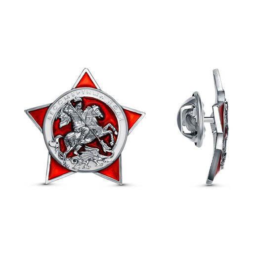 Значок "Бессмертный полк". На лицевой стороне находится образ Георгия Победоносца убивающего змия.  Георгий Победоносец, изображенный на значке, является символом мужества, веры, защиты и духовной силы. Крепление методом цанга (бабочка - фиксатор препятствующая произвольному вращению значка на одежде).­