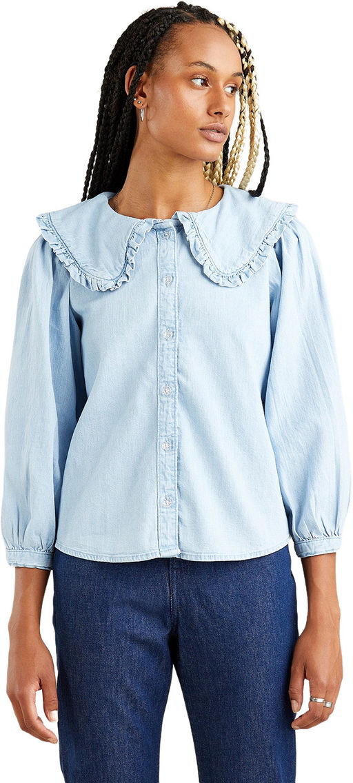 Классическая рубашка Levis Mimmi Collar Blouse в невероятно милом дизайне благодаря объемным, слегка укороченным рукавам, чтобы на руке были видны часы или браслет. Объемный воротник с отделкой оборками. Красивая, элегантная и игривая рубашка на пуговицах. Широкий воротник с изящными оборками завершает неповторимый образ.