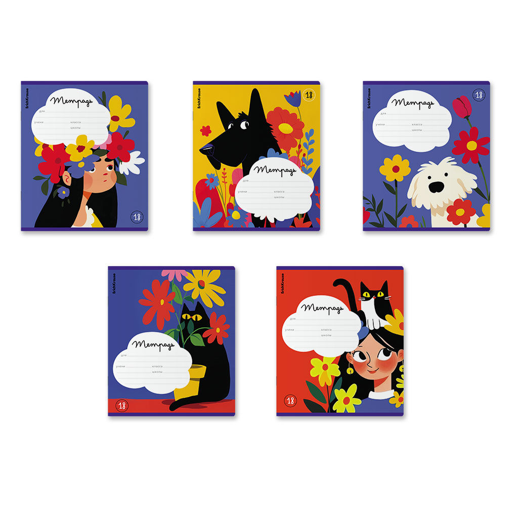 • АКЦИЯ Цена за 10 шт. Тетрадь школьная ученическая ErichKrause Sunbloom, 18 листов, линейка (в плёнке по 10 шт.)_MIX-PACK