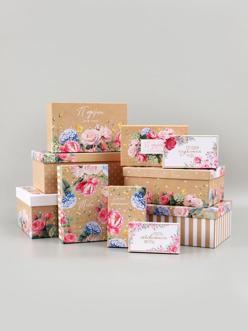 Набор подарочных коробок 10 в 1 «Нежные цветы», 12 × 7 × 4 - 32.5 × 20 × 12.5 см
