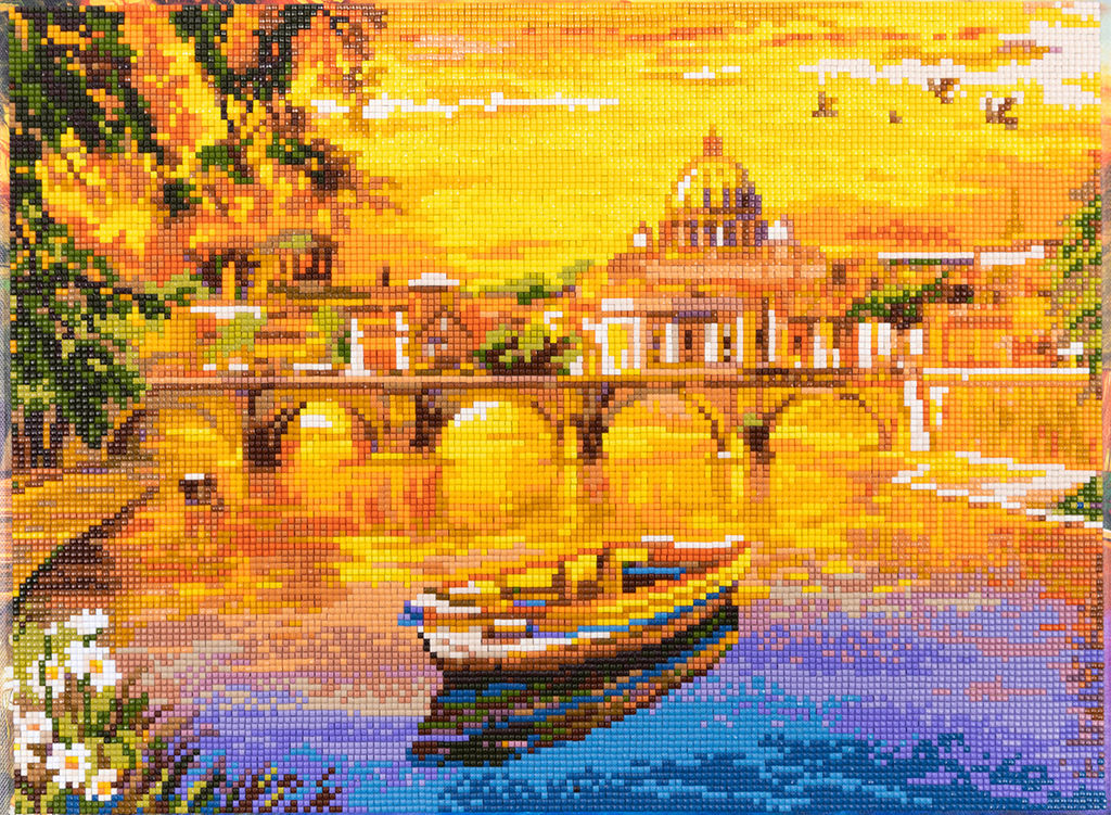 Кристальная (алмазная) мозаика ФРЕЯ ALPD-072 на подрамнике Лодка на закате 40 х 30 см
