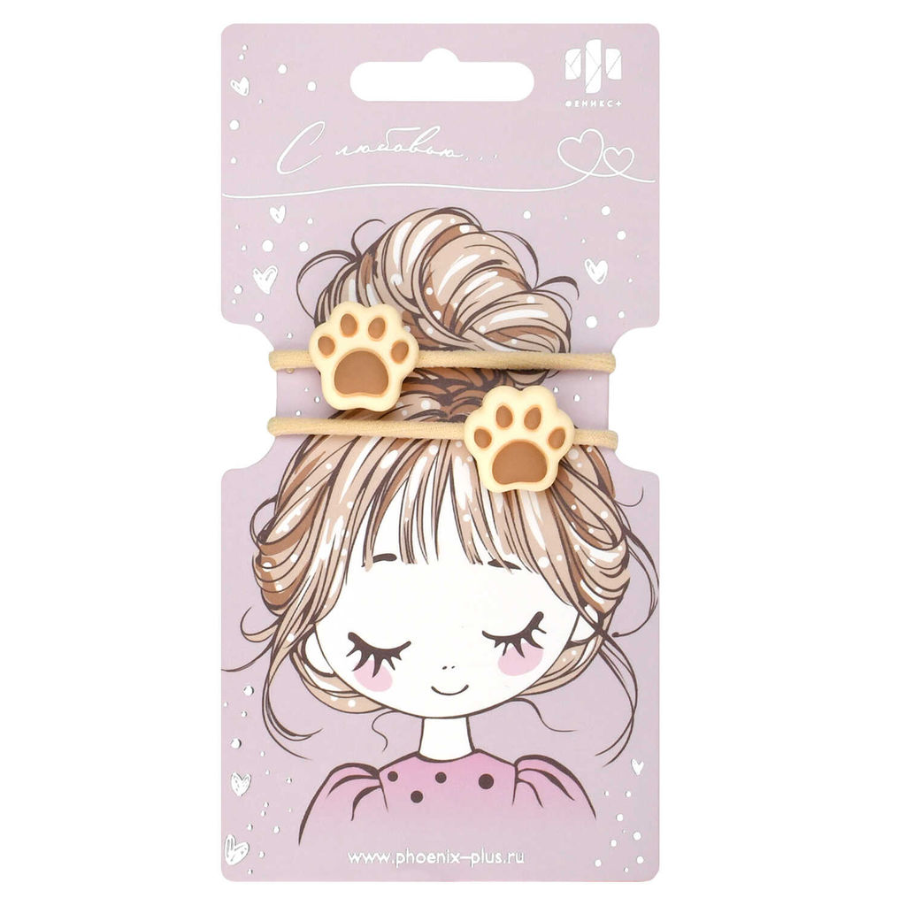 Набор резинок для волос арт. 71847 / 10 ЛАПКИ (в наборе: 2шт., б/р, вулканизированная резина, полиэстер, полиэфирная смола, цвет: бежевый, подложка из мелованного картона + ПЭТ-пакет с европодвесом)