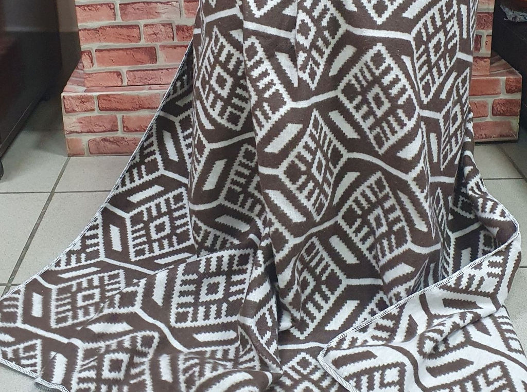 • Одеяло байковое 140*205 жаккард "Норвежские узоры" цв. корич (Россия ВВТ)
