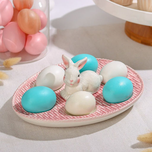 Подставка для яиц станет оригинальным решением для сервировки во время пасхальных торжеств и других пышных праздников. Посуда изготовлена из доломита и украшена забавным кроликом! Оригинальный дизайн изделия делает его гармоничным дополнением к любому варианту оформления стола.Внимание к деталям - признак заботливого хозяина. Создавайте наилучшее впечатление от застолья!Не рекомендуется мыть в посудомоечной машине. Количество ячеек: 6. Тематика: Животный мир. Рисунок: Да. Можно мыть в посудомоечной машине: Нет. Текстура: С рельефом. Бесплатная доставка: Да. Размеры товара: 18/9/25. Примечание: Оттенок данного товара может незначительно отличаться от фото/видеоизображения (в зависимости от настроек яркости вашего экрана)..