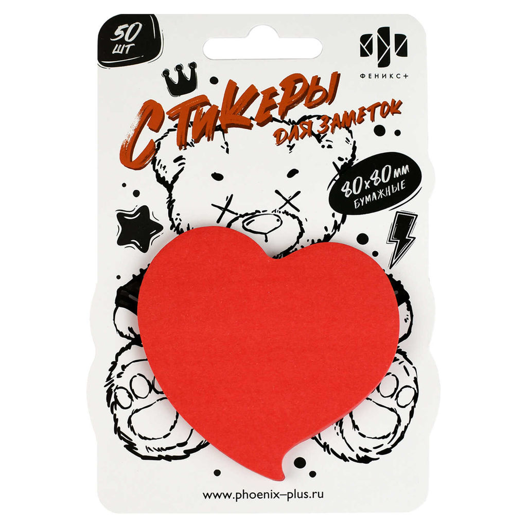 Стикеры для заметок бумажные, 80x80 мм, 50 шт., арт. 67832 / 25 ПЛЮШЕВЫЙ МИШКА. КРАСНЫЙ (материал: бумага 80 г/м?, цвет: красный; форма: фигурная, декор: печать в 1 краску; наличие диспенсера: нет, индивидуальная упаковка: подложка с европодвесом из мелованного картона + ПЭТ-пакет)