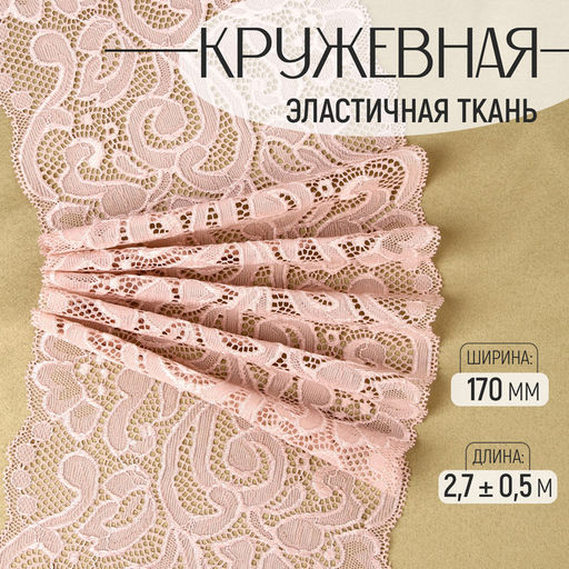 • Кружевная эластичная ткань, 170 мм, 2.7±0.5 м, розово-бежевая