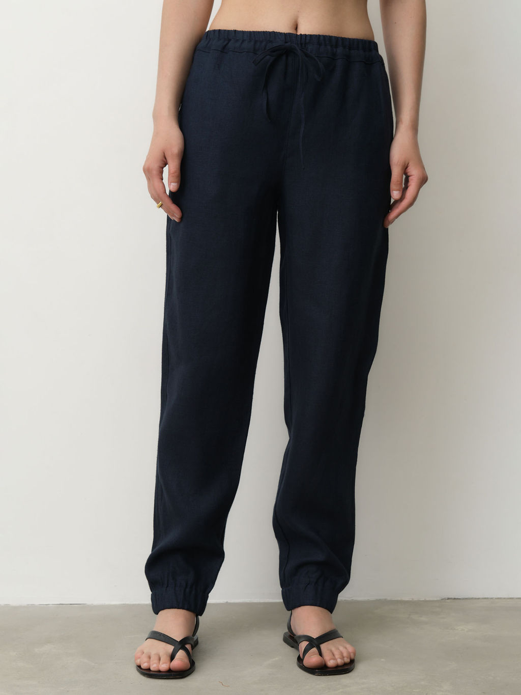 Стильные и практичные брюки из 100% натурального льна в благородном тёмно-синем оттенке универсальный элемент летнего и демисезонного гардероба. Натуральный состав гарантирует комфорт в течение всего дня, а глубокий цвет делает модель актуальной как для повседневных, так и для офисных образов. Ткань приятная к телу, дышащая, с характерной льняной фактурой. Брюки легко сочетаются с любой базовой одеждой и подходят для образов в стиле casual, smart или минимализм.