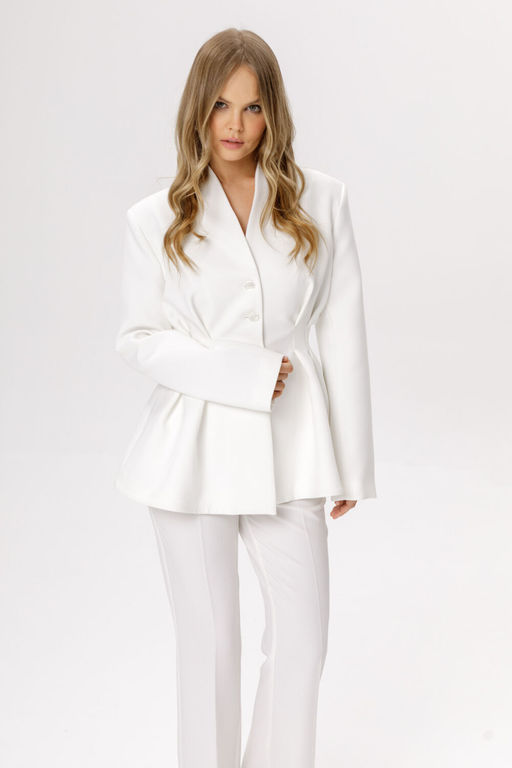 Приталенный жакет со складками и расширенными плечами.