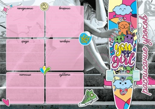 Цена за 5 шт.Расписание уроков А4, арт.63547/К/ 50 ЯРКИЙ СКЕЙТБОРД (