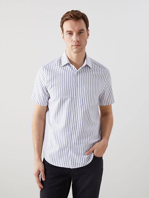 Regular Fit K?sa Kollu ?izgili Erkek G?mlek