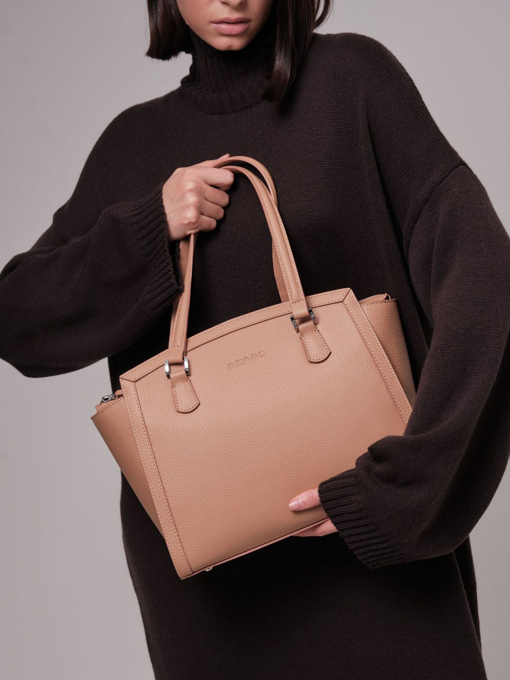 Женская кожаная сумка Azaro 30690 бежевая нуга из натуральной кожи. Классический дизайн и универсальный цвет подойдет как для повседневной носки, так и для более формальных мероприятий.
