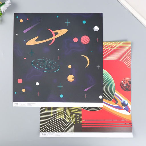 Цена за 5 шт. Двусторонняя бумага для скрапбукинга Арт Узор. Космос, 180 г/м?, 30.5?32 см