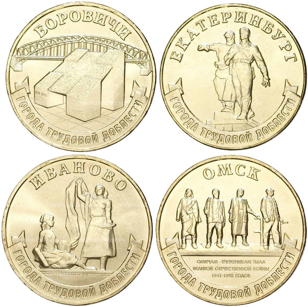 • Набор из 4 монет 10 рублей 2021 года ММД Города трудовой доблести