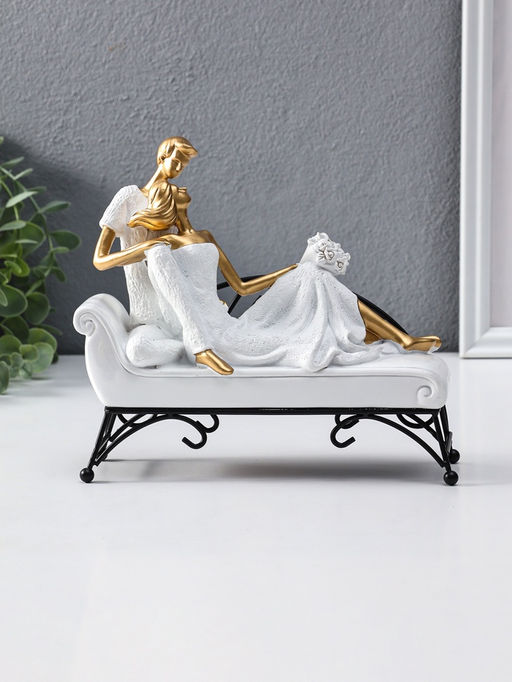 • Сувенир полистоун "Парочка лежит на кушетке" бело-золотой 7х21,5х18,5 см