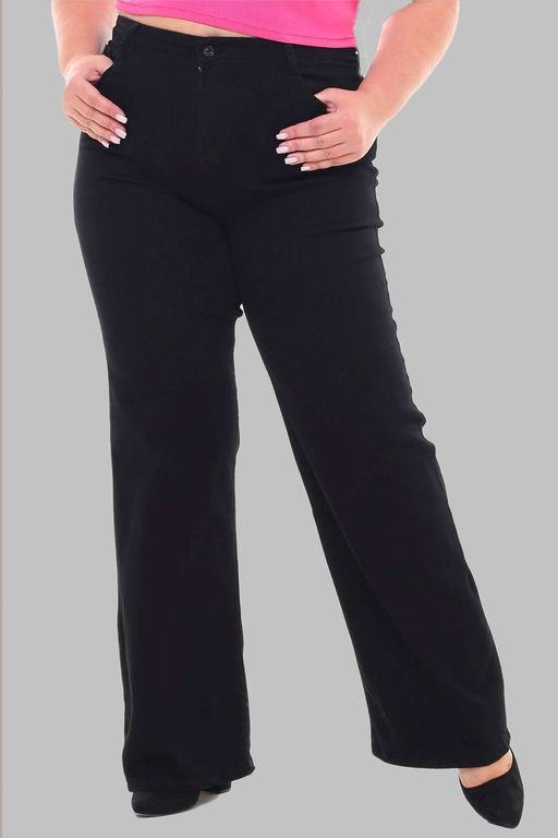 Элегантные брюки из мягкой джинсовой ткани. Модель застегивается спереди на пуговицу и скрытую молнию. Боковые карманы с отрезным бочком и накладные карманы по спинке добавляют джинсам практичности и функциональности. Модель с комфортной высокой посадкой не сковывает движений. Брюки привлекают внимание широким клешем. Комфортные джинсы - отличная база для создания разнообразных образов. Их могут смело носить как юные, спортивные барышни, так и изысканные дамы в возрасте. Правильно подобрав аксессуары, можно создавать смелые, утонченно женственные, строгие, деловые образы. (Во избежание окраски при первой носке, удалить с ткани новых джинсов излишки пигмента поможет легкая стирка с одним из закрепителей цвета (пищевой соды, уксуса, лимонной кислоты)
