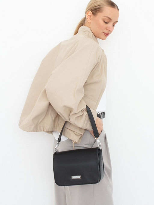 Сумка кросс-боди, выполнена из натуральной кожи. Дополнена серебристой фурнитурой. Данная модель закрывается на клапан. Каркас полужесткий. Носится в руке за съемную ручку или через плечо. В комплекте имеется съемный ремень с регулировкой длины.