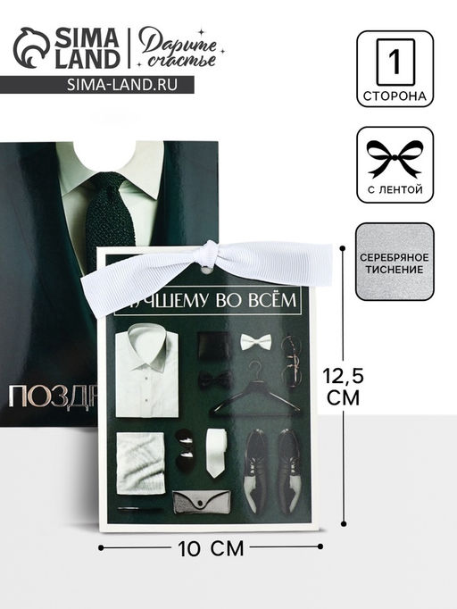 Цена за 3 шт. Открытка с конвертом на ленте «Лучшему во всём», тиснение, 10×12.5 см