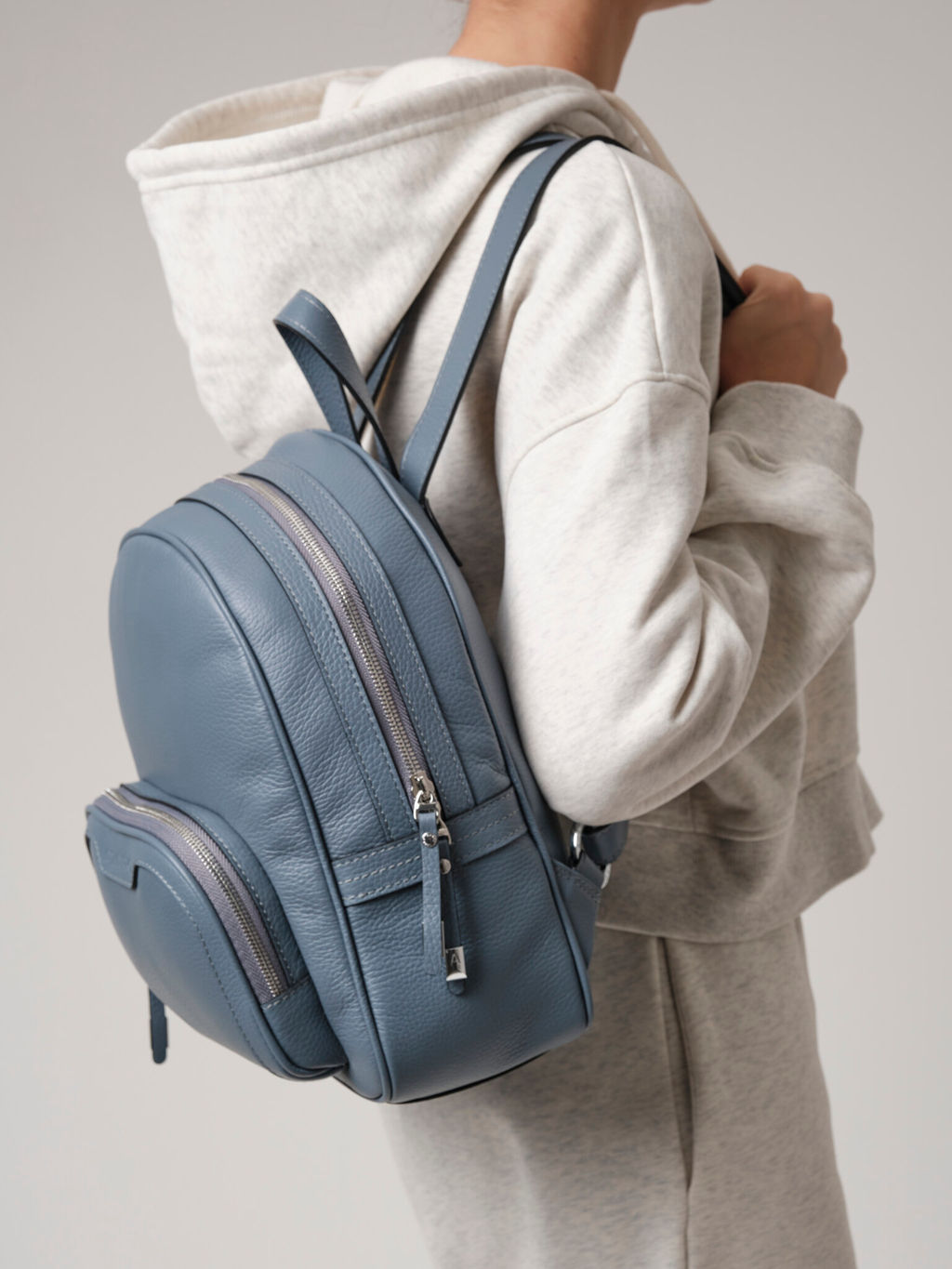 Женский кожаный рюкзак из натуральной кожи Azaro арт. 30852 серый свет идеальный аксессуар для стильных и активных женщин. Детали: натуральная кожа, регулируемые лямки, 1 внешний карман на молнии, 1 внутреннее отделение на хлопковой подкладке, 1 закрытый каман на молнии в рамке из натуральной кожи с логотипом бренда, 2 открытых боковых кармана, пуллеры из натуральной кожи с декоративной фурнитурой. Женский кожаный рюкзак Azaro 30852 сочетает в себе элегантный дизайн и практичность, что делает его незаменимым спутником в повседневной жизни. Мягкая текстура натуральной зернистой кожи приятно ощущается на ощупь, а изысканный внешний вид добавляет образу шика и утонченности. Комфорт и функциональность ключевые особенности этого кожаного рюкзака. Удобные регулируемые лямки позволяют настроить рюкзак под любую фигуру, а вместительное основное отделение достаточно для хранения всех необходимых вещей. Внутри предусмотрены карманы для мелочей, что упрощает организацию пространства. Рюкзак идеально подходит как для прогулок по городу, так и для путешествий. Это отличный выбор для тех, кто ценит качество, стиль и комфорт в каждом дне. -- Характеристики -- Цвет: серый Материал: Натуральная кожа Бренд: Azaro Тип: Рюкзак Страна-изготовитель: Россия Высота, см: 32 Ширина, см: 27 Глубина, см: 13 Материал подкладки: Хлопок Количество внутренних отделений: 1 Количество внешних карманов, шт: 1 Тип застежки: Молния Формат А4: не вмещает Вес товара, г: 840 Озон (наличие): нет Пол: женская коллекция Группа товара: Сумки
