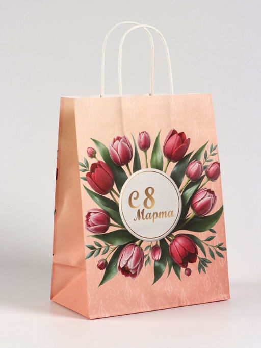 • Цена за 2 шт. Пакет подарочный крафт, С 8 Марта, 21?11?27 см