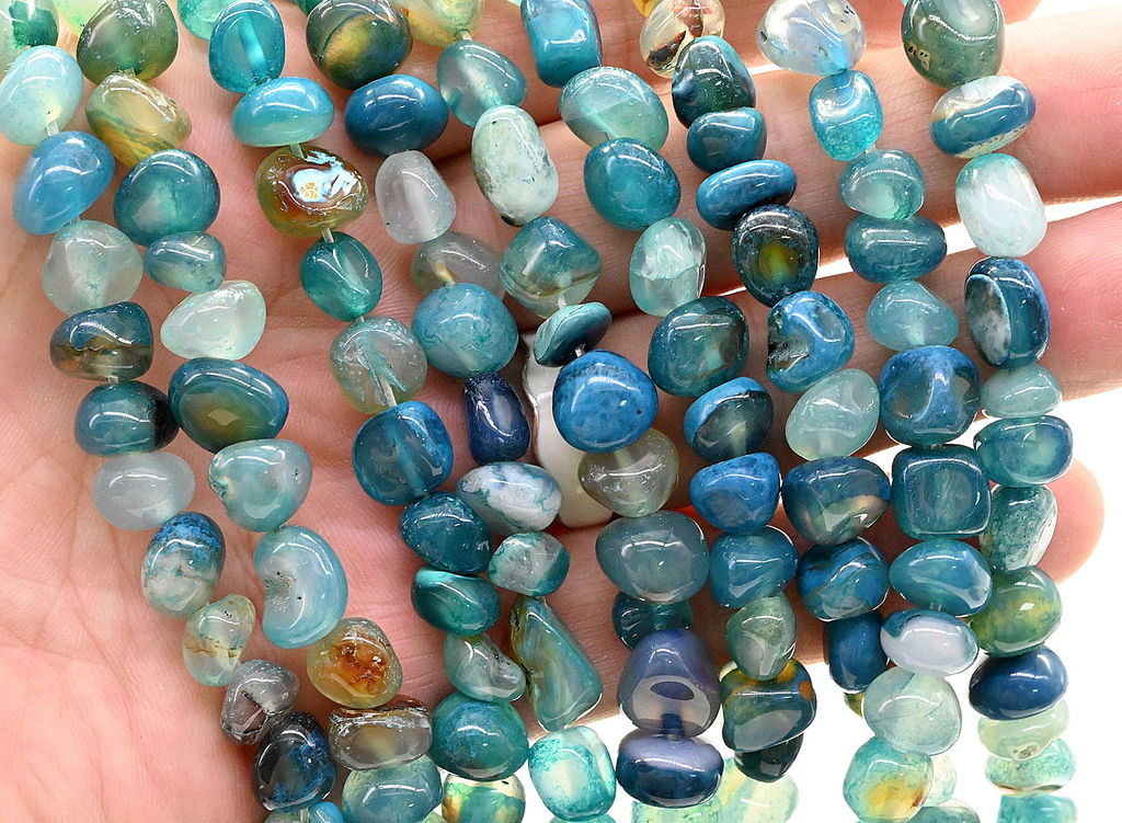 Бусины из агата тонированного галтовка 10*6мм цв.голубой, 36см, 48 бусин Радуга камня