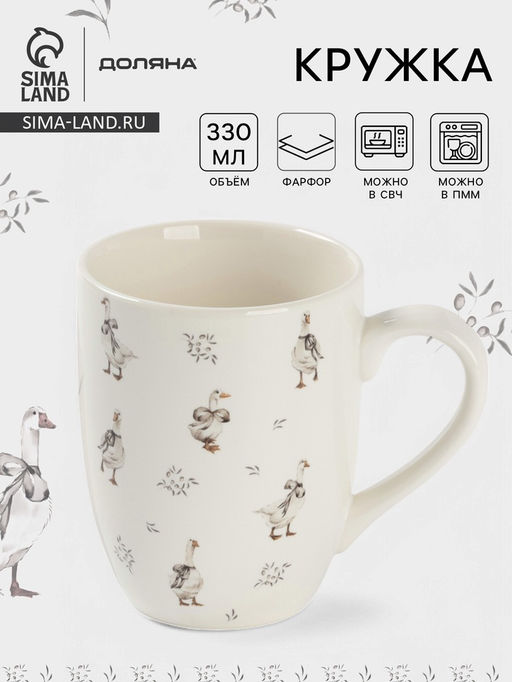 • Кружка Доляна «Гуси», 330 мл, фарфор, белая