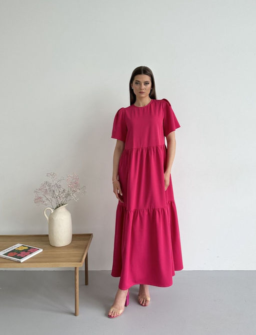 Платье макси , короткий рукав, 2-ярусная юбка­