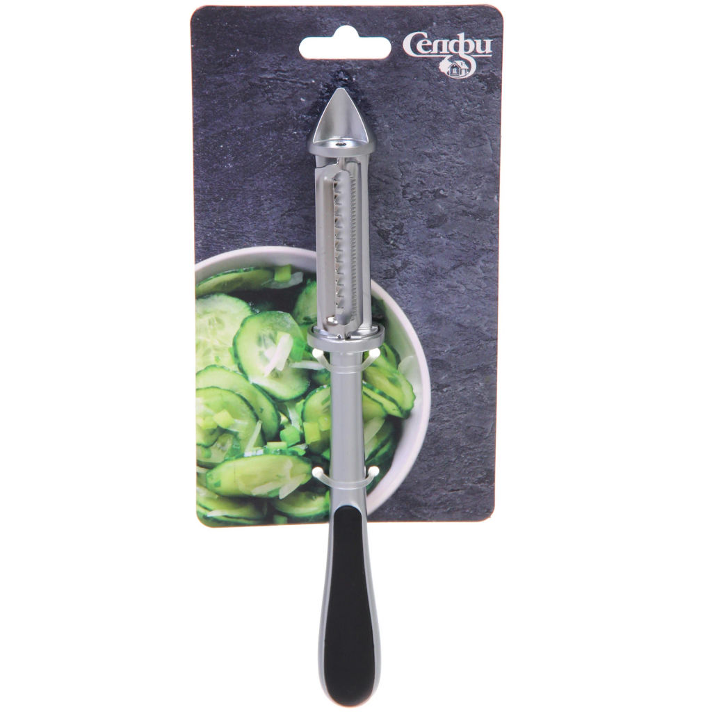 Компактный кухонный аксессуар поможет быстро снять кожицу с фруктов, корнеплодов и других продуктов. С помощью заостренного кончика удобно удалять глазки с клубней картофеля, сердцевину груш и яблок, вынимать косточки из персиков.­