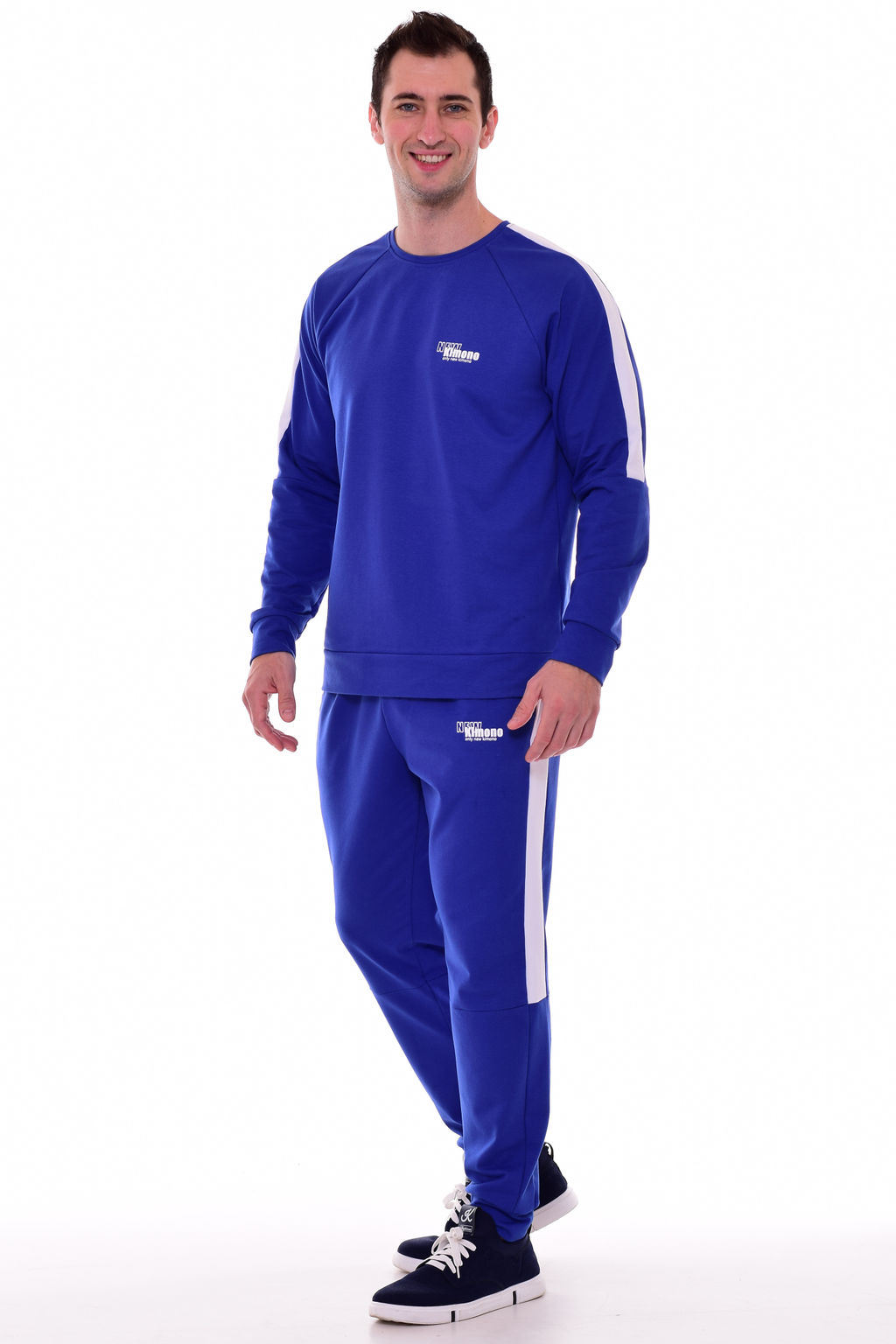 Мужской костюм из футера двухнитки. Свитшот свободного кроя с длинным рукавом на манжете покроя реглан, горловина круглая. Брюки-джоггеры свободного кроя заужены к низу на манжете двумя боковыми карманами, пояс на широкой резинке со шнуром. Контрастный лампас до середины рукава и до колены брюк сочетается по цвету с принтами. Длина толстовки по спинке: 46-70 см, 48-71 см, 50-74 см, 52-75 см, 54-76 см, 56-77 см, 58-78 см, 60-79 см. Длина рукава (реглан от горловины): 46-76 см, 48-77 см, 50-77 см, 52-78 см, 54-78 см, 56-79 см, 58-80 см, 60-81 см. Длина брюк по боковому шву: 46-100 см, 48-101 см, 50-102 см, 52-103 см, 54-104 см, 56-105 см, 58-106 см, 60-107 см. Длина брюк по шаговому шву: 46-76 см, 48-76 см, 50-77 см, 52-77 см, 54-77 см, 56-77 см, 58-77 см, 60-77 см.