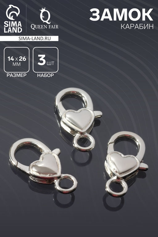 • Цена за 2 шт. Замок-карабин «Сердечко» гладкое, (набор 3 шт.), 14×26 мм, цвет серебро