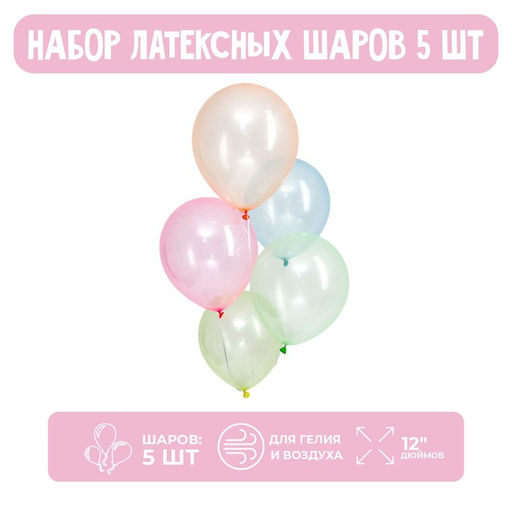 • Цена за 3 шт. Воздушные шары латексные 12", 5 шт., кристалл, МИКС