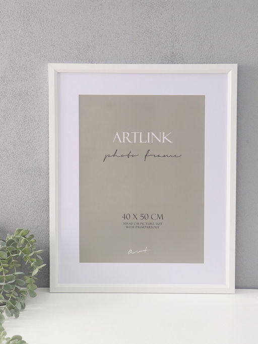 Фоторамка для фото 40×50 см, с паспарту (30×40 см), Anna, МДФ, белый (пластиковый экран)
