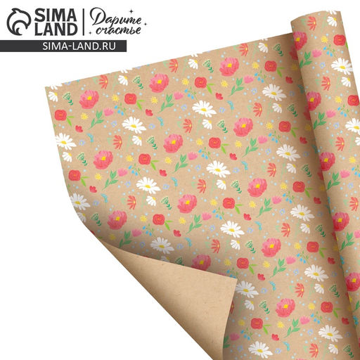 • Цена за 10 шт. Бумага упаковочная крафтовая Розовые цветочки, 70 ? 100 см